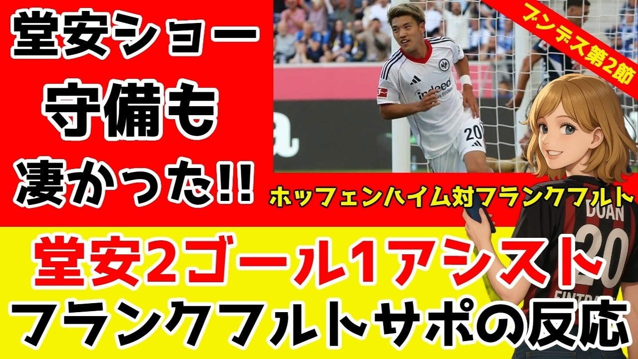 ドイツ・ブンデスリーガ第2節のTSG1899ホッフェンハイム対アイントラハト・フランクフルトの試合で2ゴール1アシストの大活躍をした堂安律選手に対してのフランクフルトサポーターの反応です