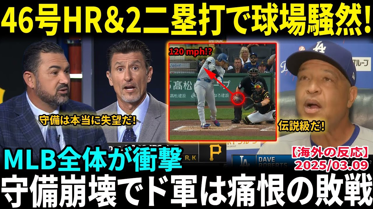 【大谷翔平】46号特大弾&2本の二塁打にMLB騒然!!ロバーツ監督も絶賛「彼はすでにレジェンドと肩を並べている!」一方で専門家がド軍守備を痛烈批判…痛恨の敗戦に【海外の反応/MLB/野球】