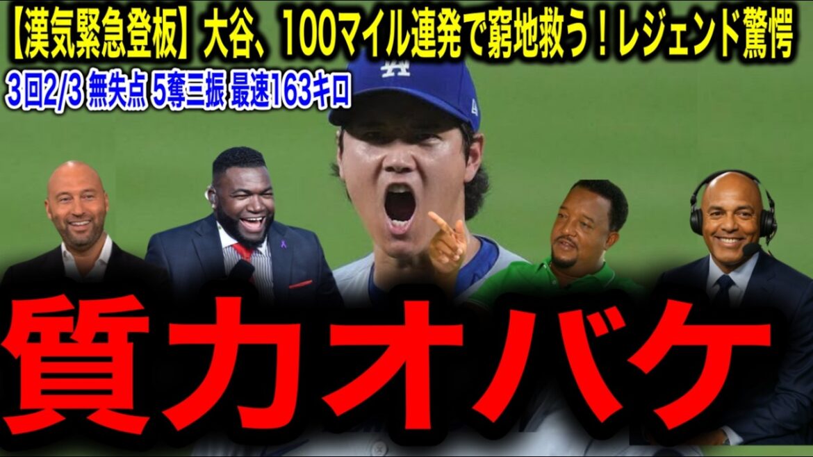 【大谷翔平】“漢気緊急登板”3回2/3 無失点 5奪三振 最速163キロ!100マイル連発で窮地救う!レジェンド驚愕