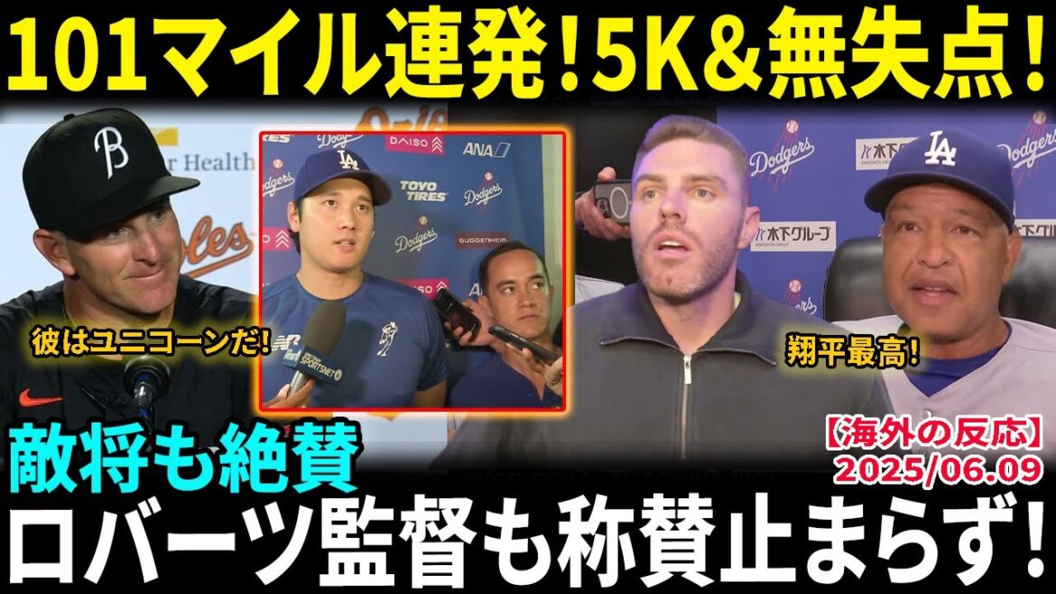 【大谷翔平】101マイル連発で5奪三振&無失点!敵将も絶賛「彼はユニコーンだ!」ロバーツ監督も称賛止まらず…しかしタナー・スコット痛恨被弾にファン激怒「もう限界だ!」【海外の反応/MLB/野球】