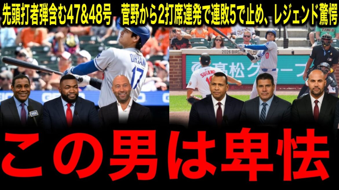 衝撃【大谷翔平】47、48号!2打席連発で2年連続50本塁打に秒読み段階!「シュワーバーMVP阻止」レジェンドドン引き!