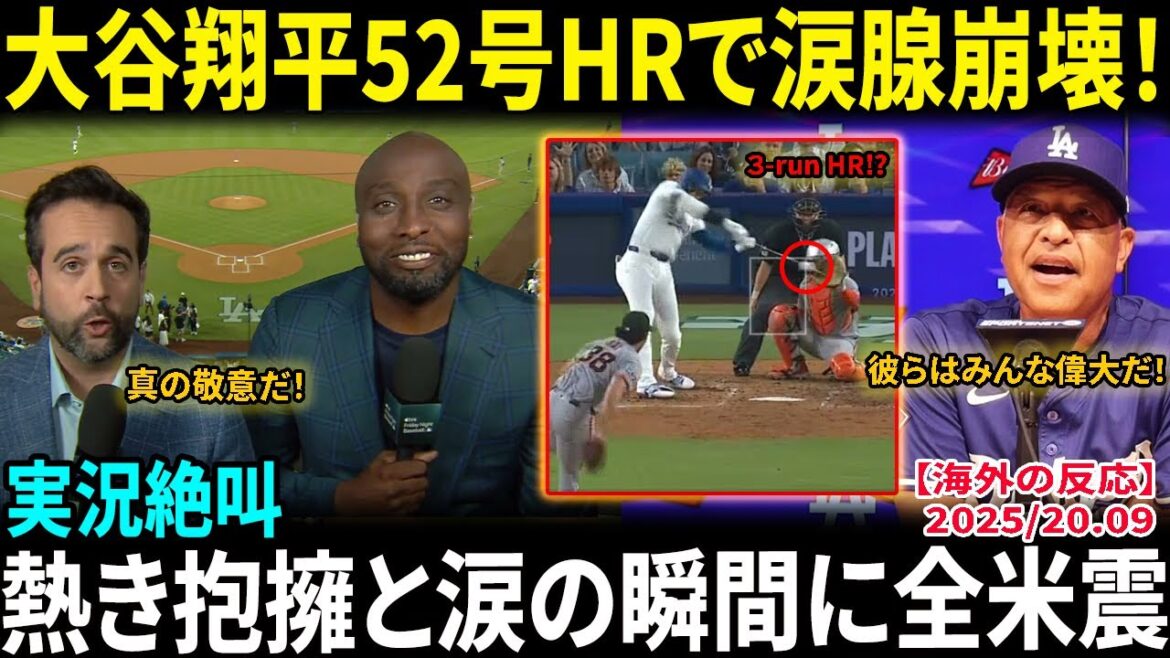 【大谷翔平】52号ホームランにスタジアム大揺れ!実況絶叫「カーショウへの真の敬意だ」熱き抱擁と涙の瞬間に全米震【海外の反応/MLB/野球】