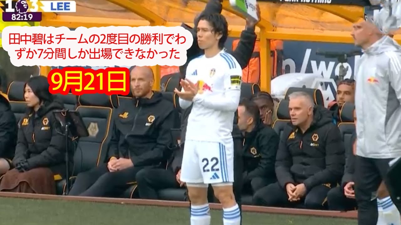 【9月21日】田中碧はチームの2度目の勝利でわずか7分間しか出場できなかった。