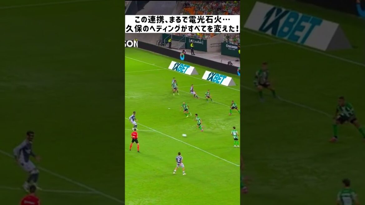 ラ・リーガの試合で、久保建英がブライス・メンデスと超高速のワンツーを展開。 その後、久保が驚異の跳躍でヘディングパスを送り、ジョン・アランブルが一気に左サイドを突破するシーンを切り取りました。