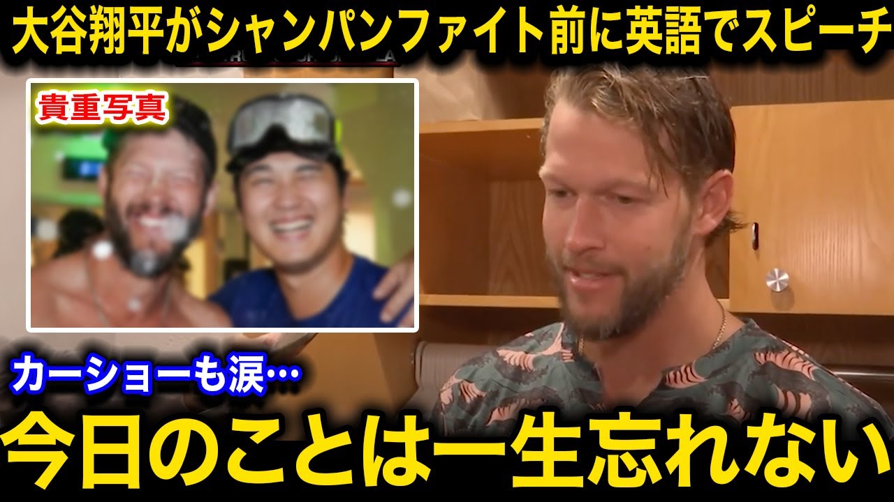 【大谷翔平】シャンパンファイト前の英語スピーチに全米大絶賛!まさかのスピーチ内容カーショーも感涙【海外の反応/ドジャース】