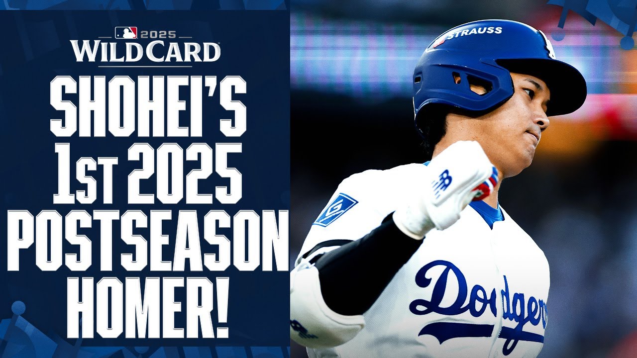 Shohei Ohtani hits his first home run of the 2025 Postseason in the first inning of Game 1 of the NL Wild Card Series vs. the Cincinnati Reds on September 30, 2025.