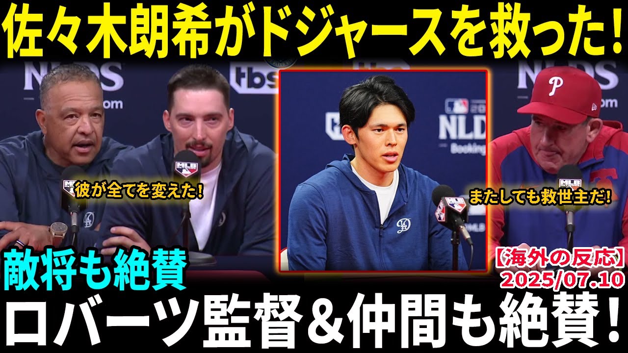 【大谷翔平】佐々木朗希がドジャースを救った!MLB全体が衝撃「彼らは奇跡を起こした!」敵将も絶賛、ロバーツ監督と仲間たちからも称賛の声【海外の反応/MLB/野球】