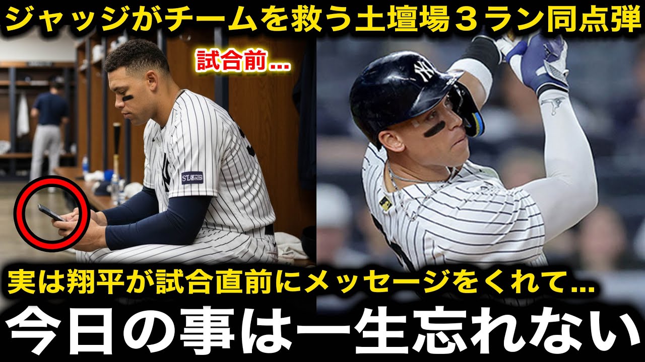 【感動】全米で話題に❗️大逆転勝利に繋がる起死回生の同点3ランを放ったジャッジに大谷翔平が送っていた”メッセージ”に米国中が涙…【海外の反応/ヤンキース/ドジャース】