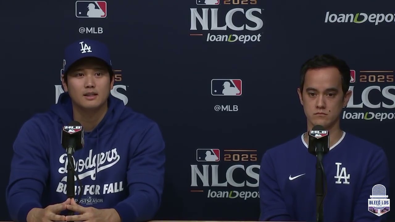 ドジャースの大谷翔平選手がNLCS第2戦後にメディア対応を行い、打席でのアプローチ、デーブ・ロバーツ監督のコメント、第4戦への意気込み、そして山本由伸投手の完投について語りました。