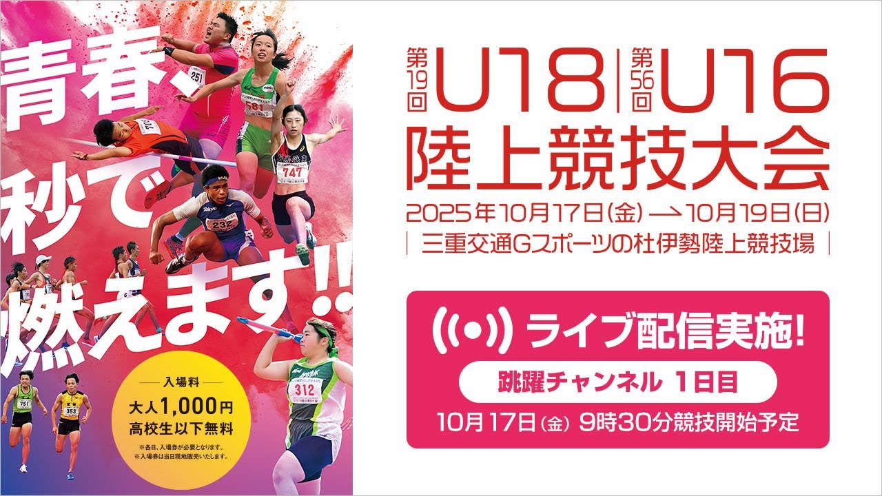 大会ハッシュタグ「#U18U16陸上大会 」「#青春秒で燃えます 」