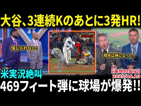 【大谷翔平】3者連続三振のあとに3発の特大ホームラン!! 米実況絶叫「翔平は神になった!」469フィート弾に球場が爆発!!【海外の反応/MLB/野球】