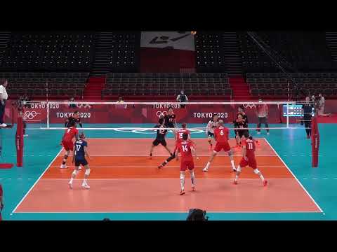 Service, Spike and Block by Yuki Ishikawa at Tokyo 2020 Olympic Games.