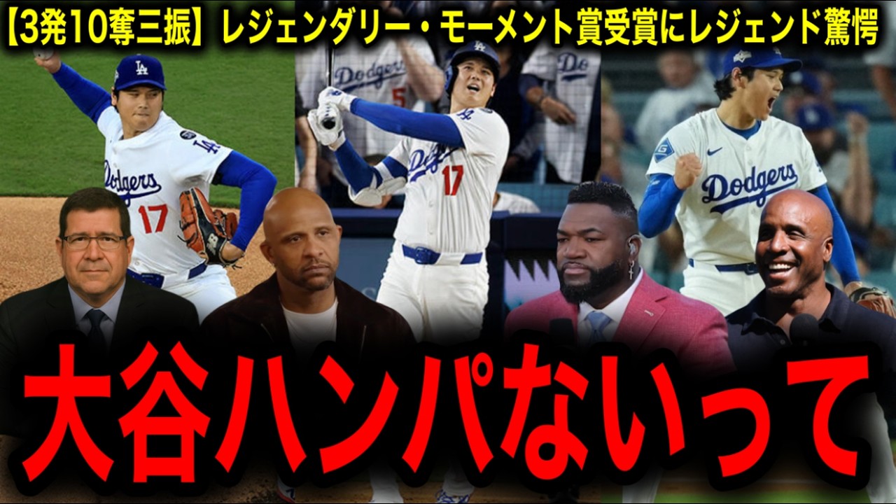 【大谷翔平】「伝説的瞬間」賞受賞!リーグ優勝決定シリーズ第4戦の3本塁打、10奪三振の伝説にレジェンド驚愕