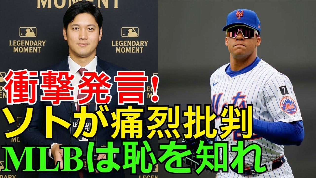 🔥メジャーリーグに激震!今回は、大谷翔平選手が受賞した「レジェンダリーモーメント賞」に対し、スーパースターのフアン・ソト選手が放った衝撃的な批判発言の裏側に迫ります。この賞は本当に大谷選手の功績を正しく評価しているのか?MLBの選考基準に疑問を投げかけるソトの発言を徹底分析します。