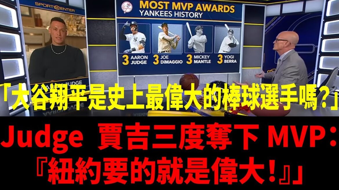 【中譯】大谷翔平以4屆國聯 MVP之姿,成為史上最偉大的棒球選手!ESPN 與Aaron Judge尊敬他深表尊敬!就連美國那些立場對立的媒體和傳奇球星們,也全都為他瘋狂!