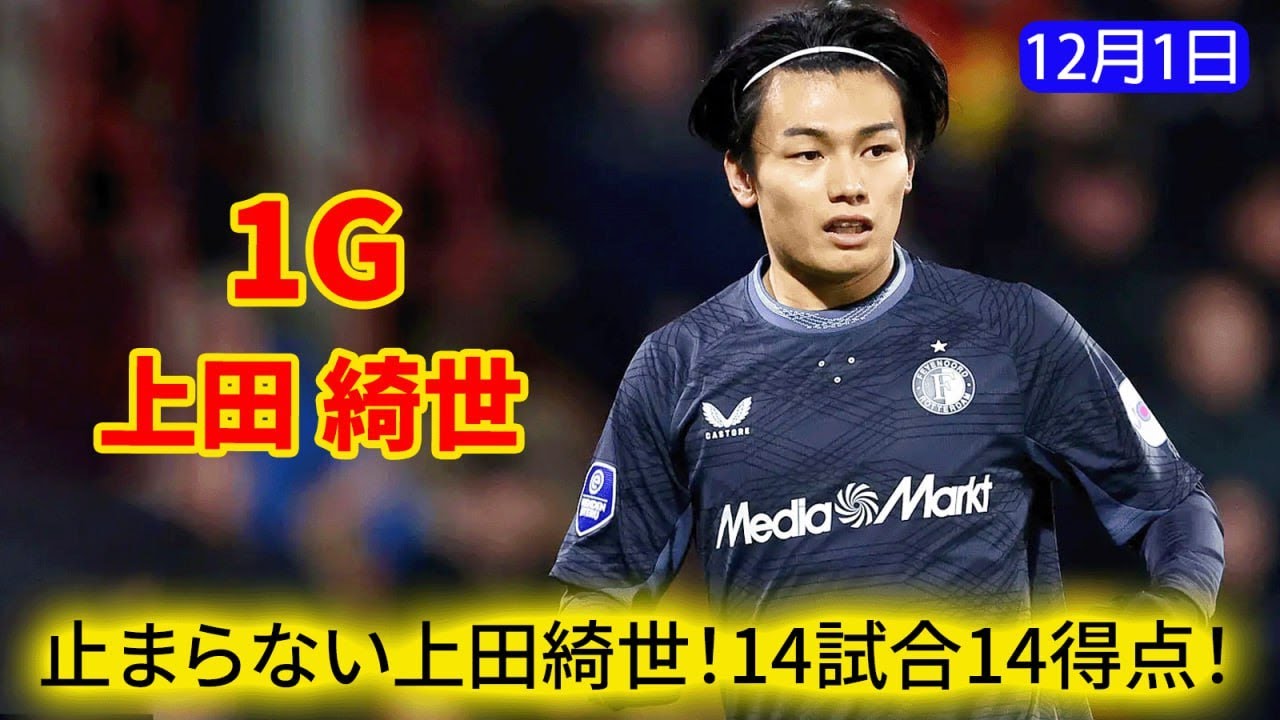上田綺世、今季14点目!14試合で得点ランキング単独トップに浮上。