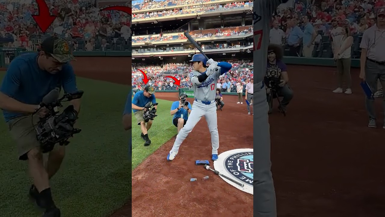試合前、大谷翔平選手がウォームアップでバットを豪快にスイング!