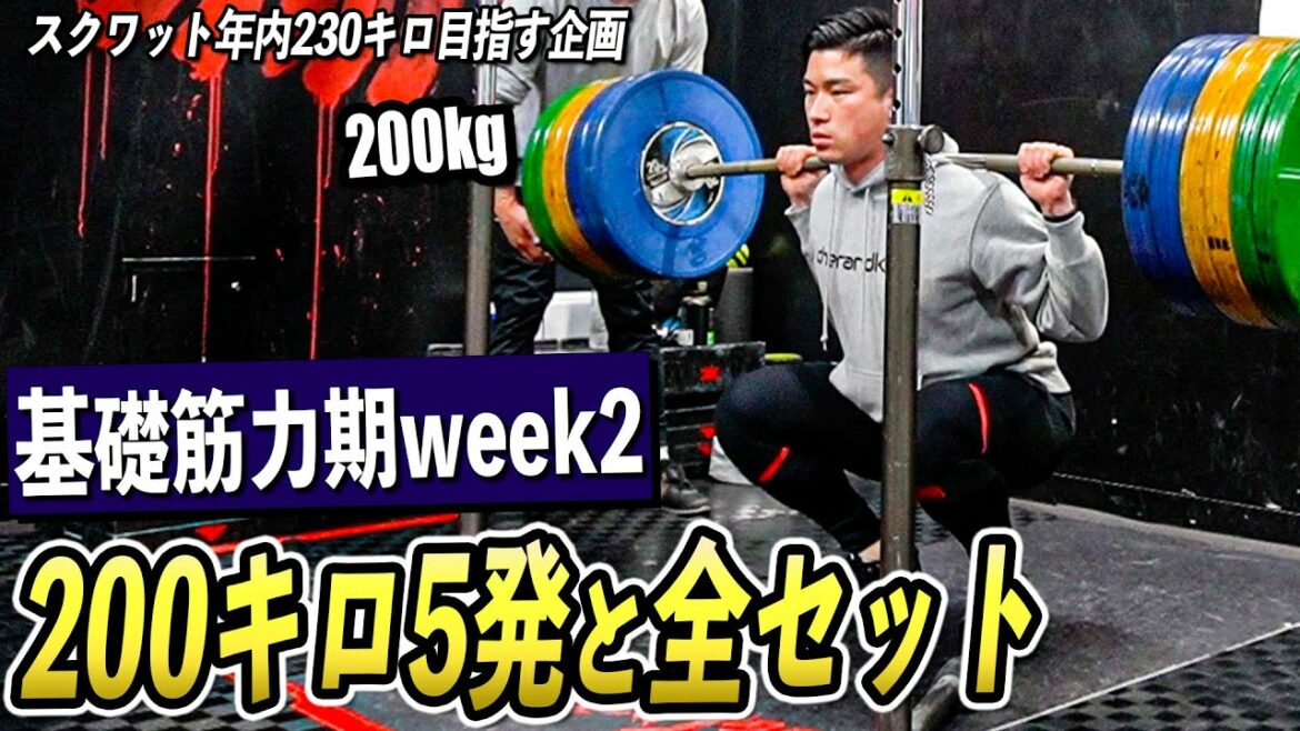 【スクワット】195キロ5発リベンジと遂に200キロ5発にチャレンジ!! 最強のトレーニングメニュー「基礎筋力期」2週目で記録を爆伸びさせる脚トレ!!