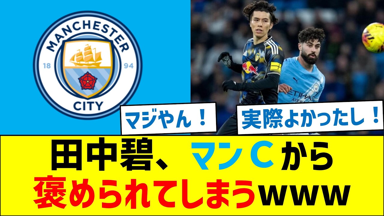 田中碧、マンチェスターシティから褒められてしまうwww