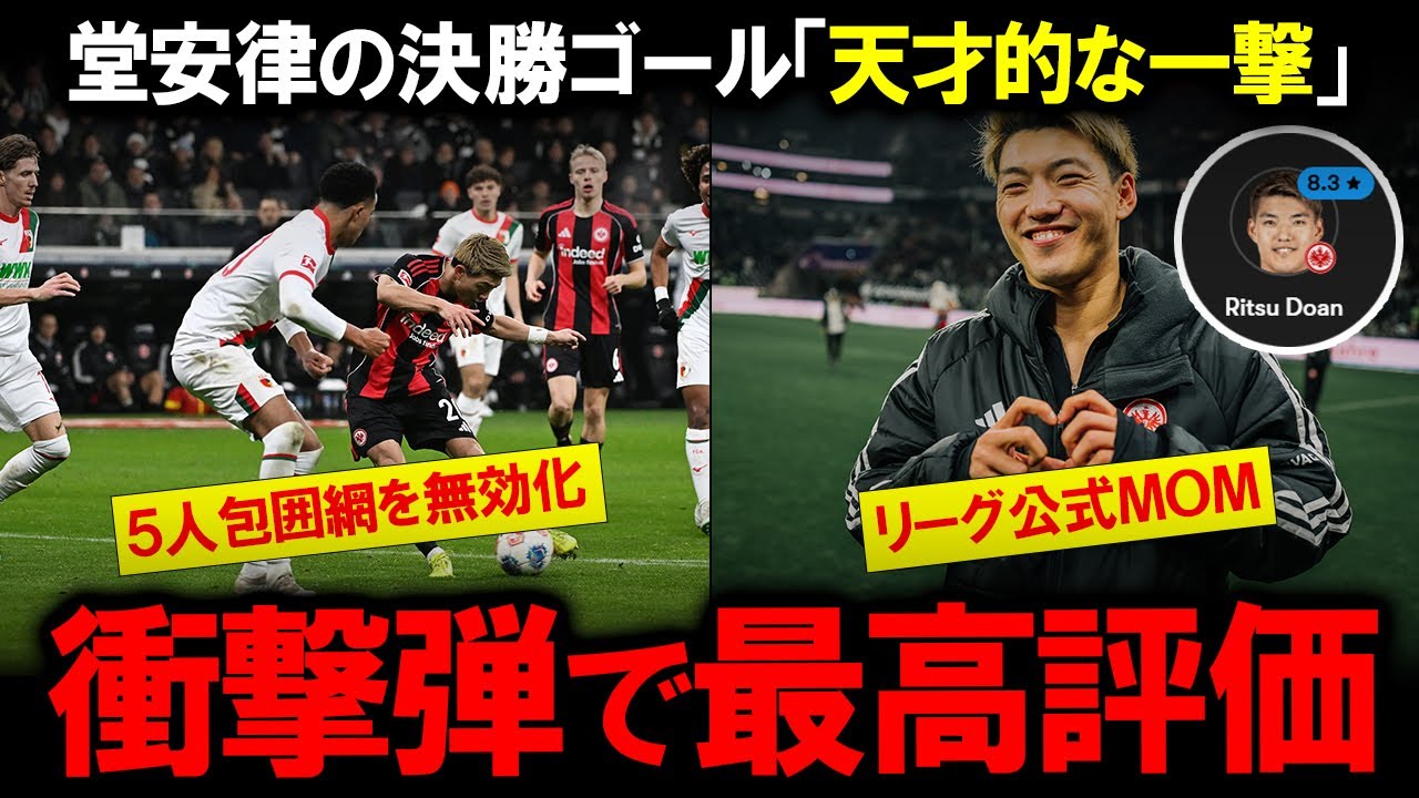 本動画では、ブンデスリーガ第14節フランクフルト対アウクスブルク戦における堂安律選手の活躍を、現地ドイツメディアの報道や監督のコメントを交えて詳細に分析します。