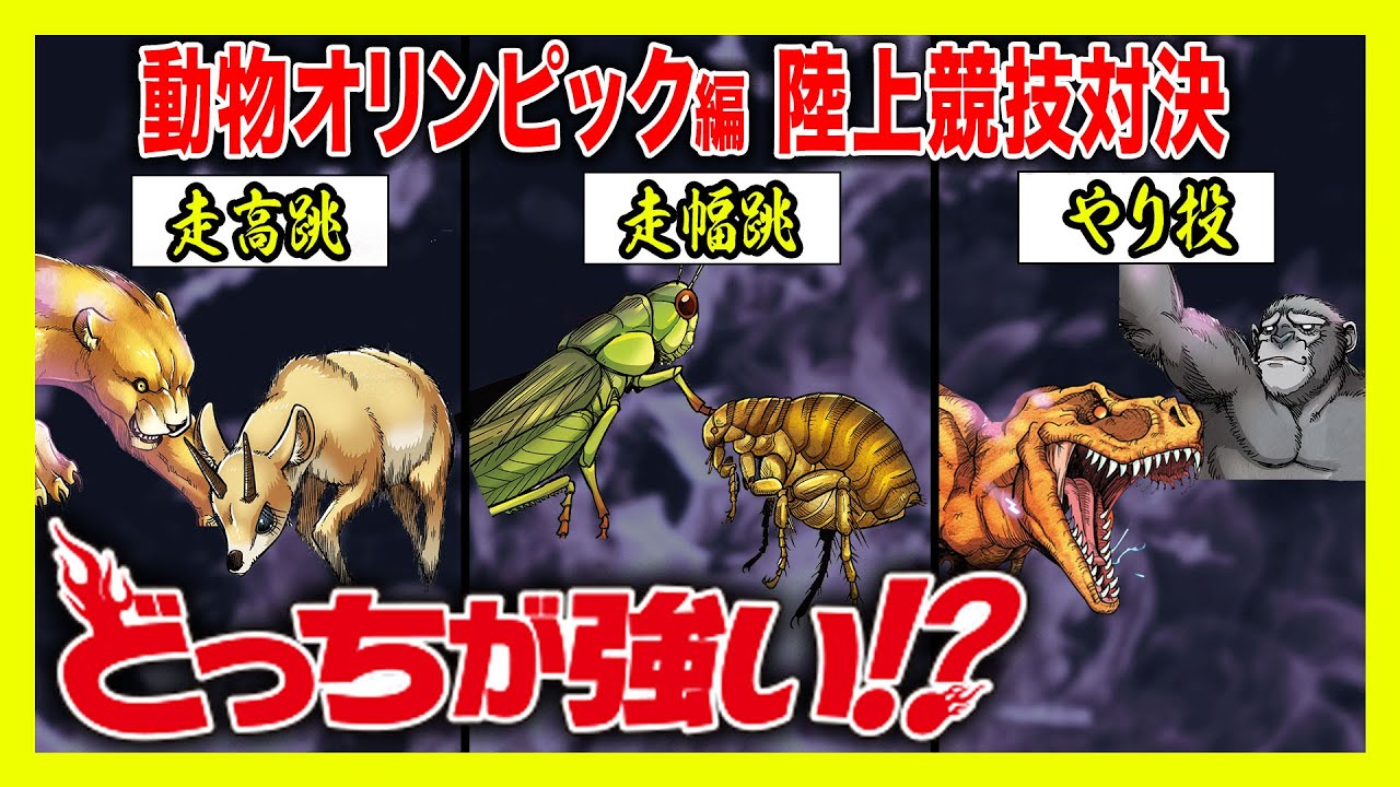 #オリンピック#どっちが強い#バトル#対決#陸上#恐竜#昆虫#ティラノサウルス#やり投#漫画#チンパンジー#バッタ#ノミ#ピューマ#クリップスプリンガー