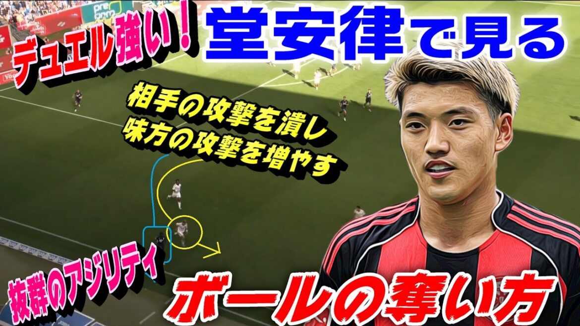 高いアジリティとデュエルでボールを奪う堂安のプレーを見て行きましょう