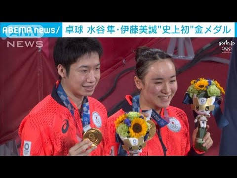卓球の新種目「混合ダブルス」の決勝に進んだ水谷隼(32)・伊藤美誠(20)ペア。序盤、2ゲームを連取されますが、追い付いて第5ゲームで逆転します。その後、中国ペアに追い付かれた水谷・伊藤ペアは最終ゲームです。一挙に8ポイントを連取します。同じ卓球クラブ出身の水谷・伊藤が接戦を制して見事優勝し、日本卓球界史上初の金メダルを獲得しました。