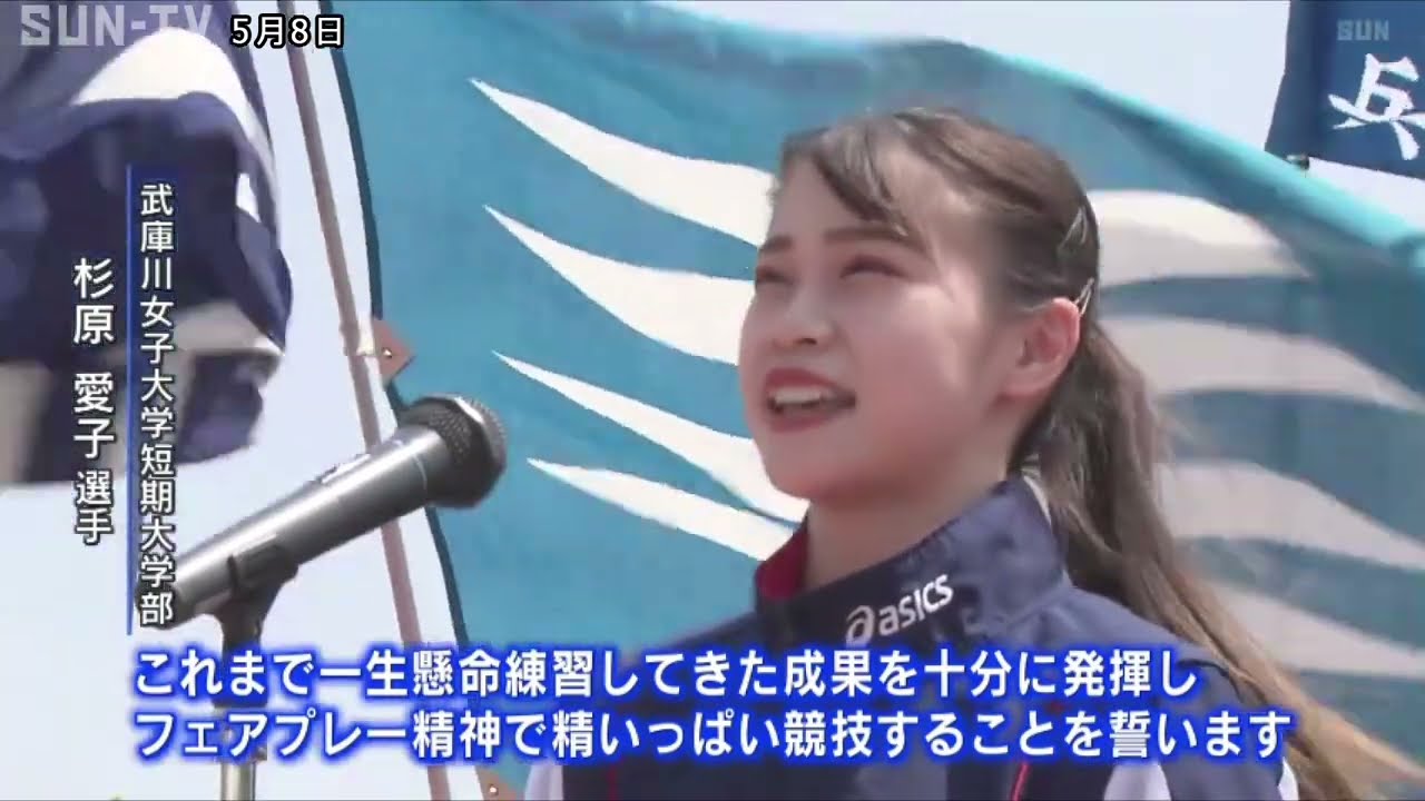 式では、選手らが道着やユニホームなどで行進したあと選手を代表して2021年の東京オリンピックで、体操女子団体5位入賞を果たした杉原愛子選手が宣誓しました。