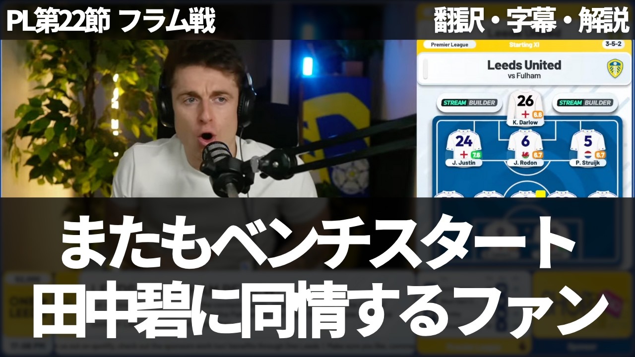 リーズ・ユナイテッドは、プレミアリーグ第22節でフラムと対戦し、後半アディショナルタイムのヌメチャのゴールにより、1対0で勝利した。田中碧は81分から途中出場し、時間は短く見せ場は多くなかったものの、得点シーンにも絡み、短い時間で、またも仕事をした田中碧が、明らかにファルカには過小評価されている。One Leedsのコナーは、グルエヴを評価しつつも、田中碧を出すべきだと話している。