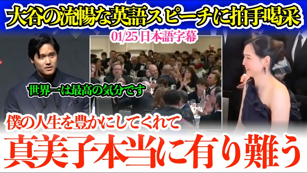大谷の笑あり感謝ありの流暢な英語スピーチに拍手喝采