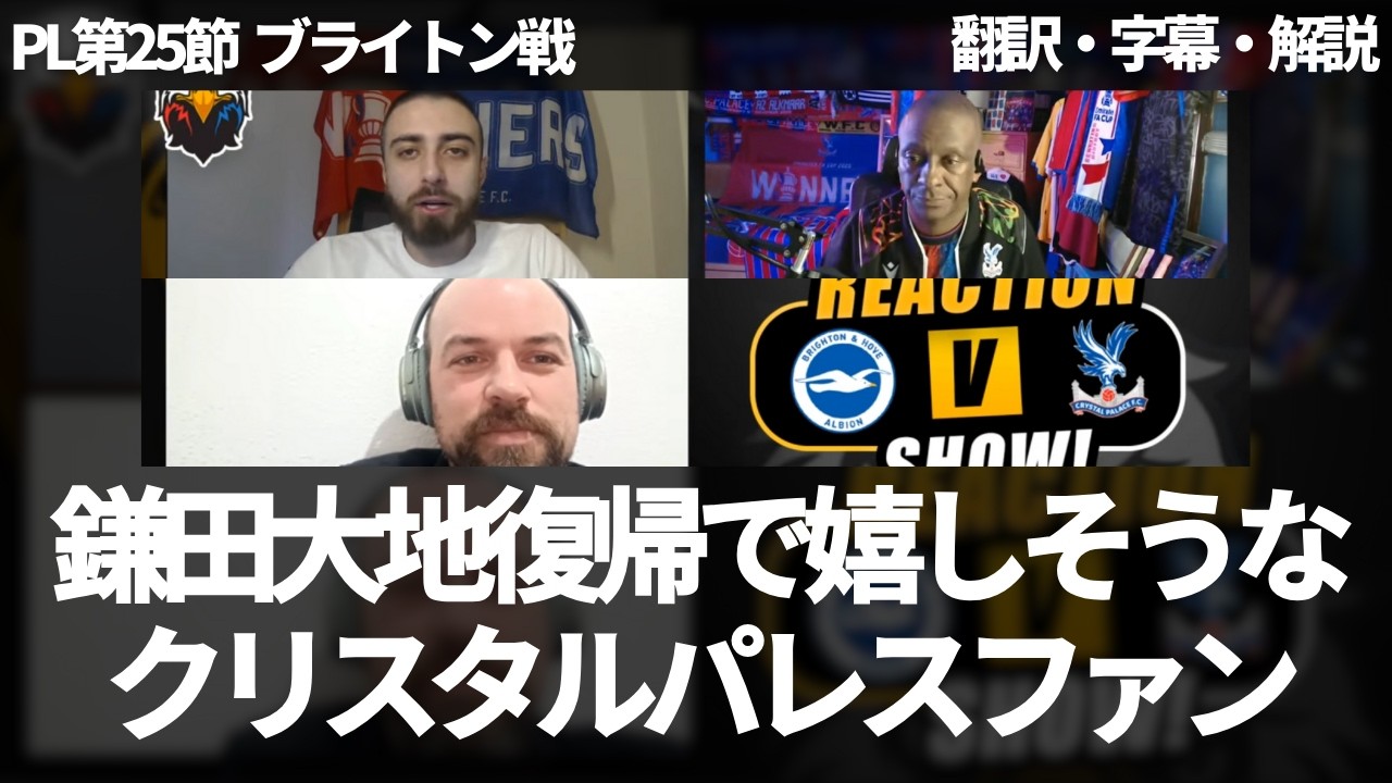 クリスタルパレスは、プレミアリーグ第25節で、三笘薫擁するブライトンとダービーを戦う。鎌田大地は、12月14日のマンチェスターシティ戦で、ハムストリングを負傷していたが、その試合を含め、12試合で1勝もできないどん底とも言える状況で、待ちに待った鎌田大地の復帰を、すでにグラスナーは明言している。クリスタルパレスファンも、鎌田が離脱してから1勝もできていないことに触れつつ、鎌田が復帰してきたことに歓喜し、鎌田の重要性を強調し、負傷明けでも先発で起用したいと話す。