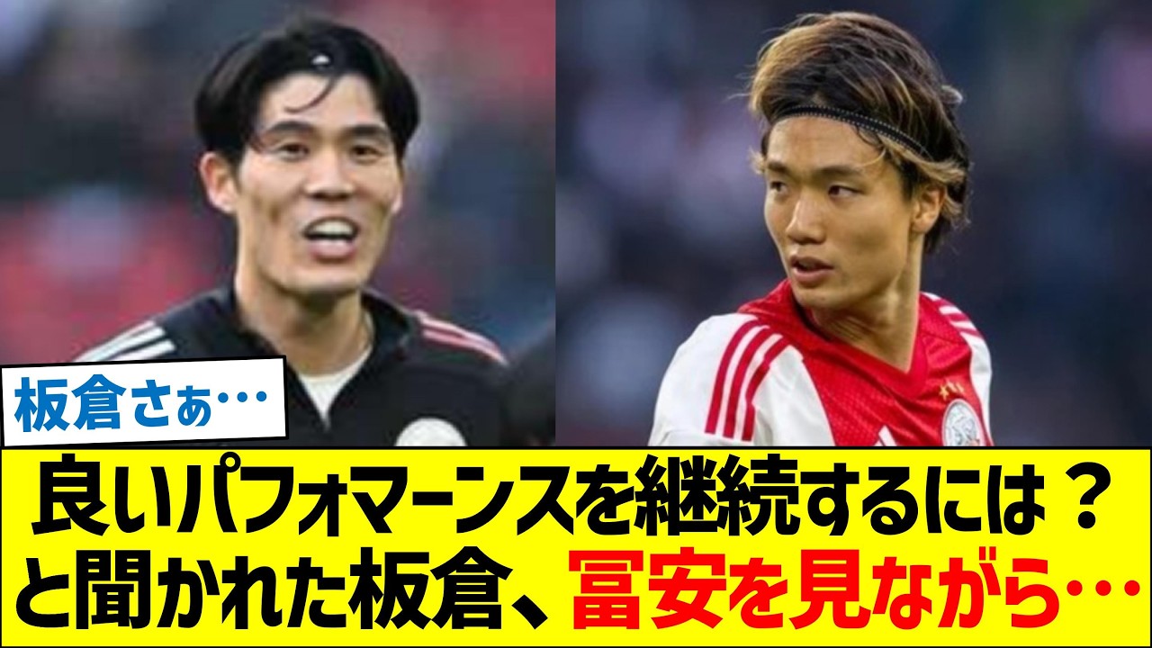 - 「良いパフォマーンスを継続するには?」と聞かれた板倉、冨安を見ながら…