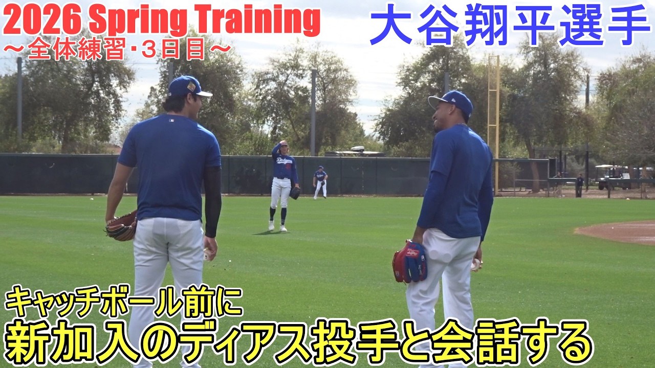 キャッチボール前に新加入のディアス投手と会話をする大谷翔平選手。 Spring Training ~全体練習・3日目~ Camelback Ranch 2026.02.18 @shinsukehandyman #大谷翔平 #shoheiohtani #dodgers #Diaz2026BaseballBPBullpenDodgersJapanMajor League BaseballMLBohtaniOhtani ShoheipitchingRokiSasakishoheiShohei OHtaniSpringstThrowingtrainingyamamotoYoshinobuキャッチボールスプリングスプリングトレーニングディアス投手ドジャーストレーニングピッチングブルペンライブ佐々木朗希大谷大谷翔平守備練習山本由伸日本牽制球翔平速報遠投 NIHON2020.COM