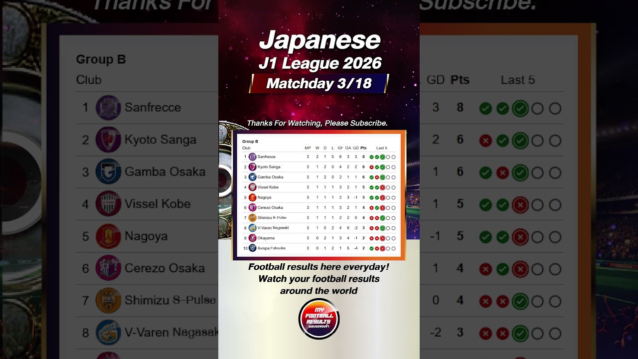 #JLeague #J1League #MeijiYasudaJLeague #JapaneseFootball #JLeague2026 #Season2026 #JLeagueFixtures #JLeagueSchedule #FootballJapan #SoccerJapan #VvarenNagasaki #SanfrecceHiroshima #KyotoSanga #VisselKobe #YokohamaFMarinos #MachidaZelvia #JEFUnitedChiba #UrawaRedDiamonds #FCTokyo #KashimaAntlers #CerezoOsaka #GambaOsaka #AvispaFukuoka #FagianoOkayama #NagoyaGrampus #ShimizuSPulse #KawasakiFrontale #KashiwaReysol #TokyoVerdy #MitoHollyHock #GroupA #GroupB #Playoffs #ChampionshipMatch #AsianFootball #FootballHighlights #SoccerFixtures #FootballNews #Subscribe