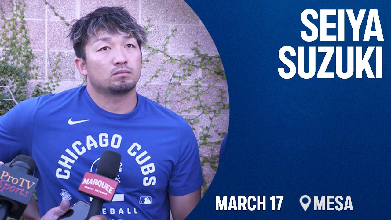 Chicago Cubs outfielder Seiya Suzuki speaks with the media at Sloan Park in Mesa, Ariz., and shares his optimism about being ready for the 2026 MLB season opener despite his PCL sprain. Suzuki also shares his initial thoughts on sustaining the knee injury during the World Baseball Classic, and more.