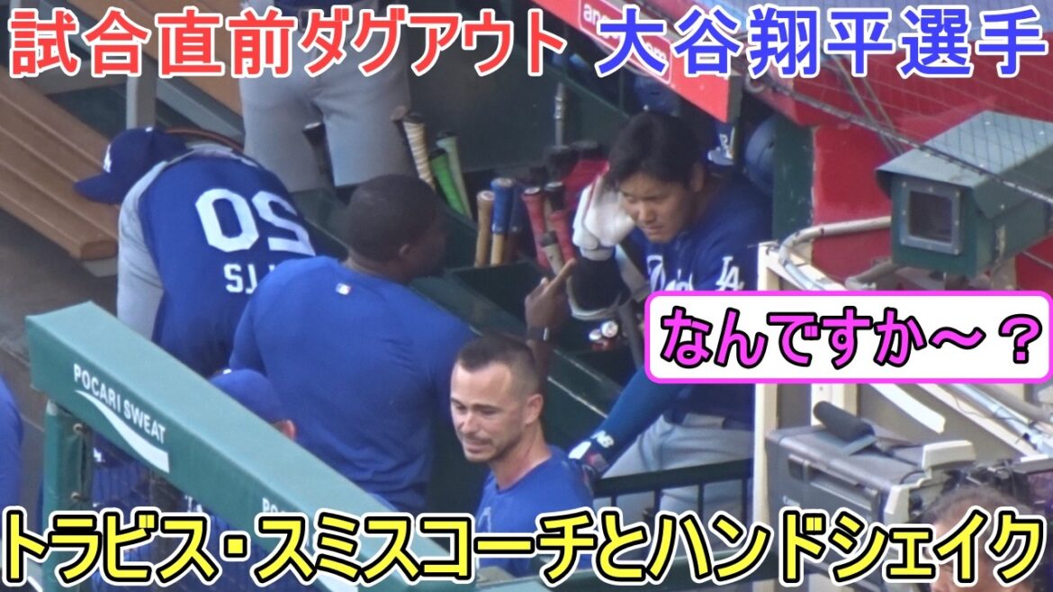 ♦試合直前ダグアウト♦トラビス・スミスコーチとハンドシェイクをする大谷翔平選手。聞こえない感じで『なんですか~?』のジェスチャーをする。 1番DHで出場の大谷翔平選手~対ロサンゼルス・エンジェルス(エキジビションゲーム)~ Angel Studium 2026.03.22 @shinsukehandyman #大谷翔平 #shoheiohtani #dodgers 2026BaseballDodgersJapanMajor League BaseballMLBohtaniOhtani ShoheishoheiShohei OHtaniThrowingスターティングラインナップスプリングスプリングトレーニングドジャーストレーニング大谷大谷翔平日本翔平速報 NIHON2020.COM