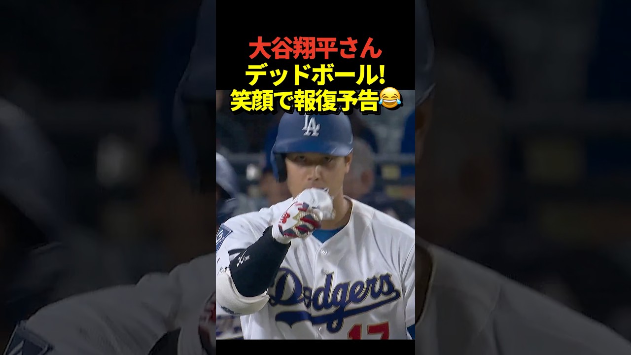 大谷翔平投手がデッドボールを受ける!1塁に歩きながら「今度投げる時やり返すぞ」のジェスチャーをして笑顔を見せる!