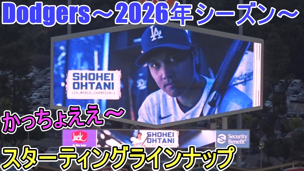 ビッグスクリーンに映し出されるドジャースのスターティングラインナップ。対クリーブランド・ガーディアンズ~シリーズ初戦~ 1番DHで出場の大谷翔平選手 2026.03.30 @shinsukehandyman #ShoheiOhtani #StartingLineup #dodgers 2026BaseballclevelandGuardiansJapanLINELos AngelesMajor League BaseballMLBohtaniOhtani ShoheishoheiShohei OHtaniStartingUpガーディアンズクリーブランドスターティングラインナップ大谷大谷翔平日本翔平 NIHON2020.COM