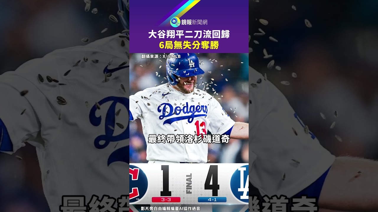 洛杉磯道奇日籍球星大谷翔平今(1)日迎來本季首次「二刀流」登板,繳出6局僅被敲1安、無失分的壓制內容,送出6次三振,幫助道奇以4比1擊敗守護者,也收下個人本季首勝。