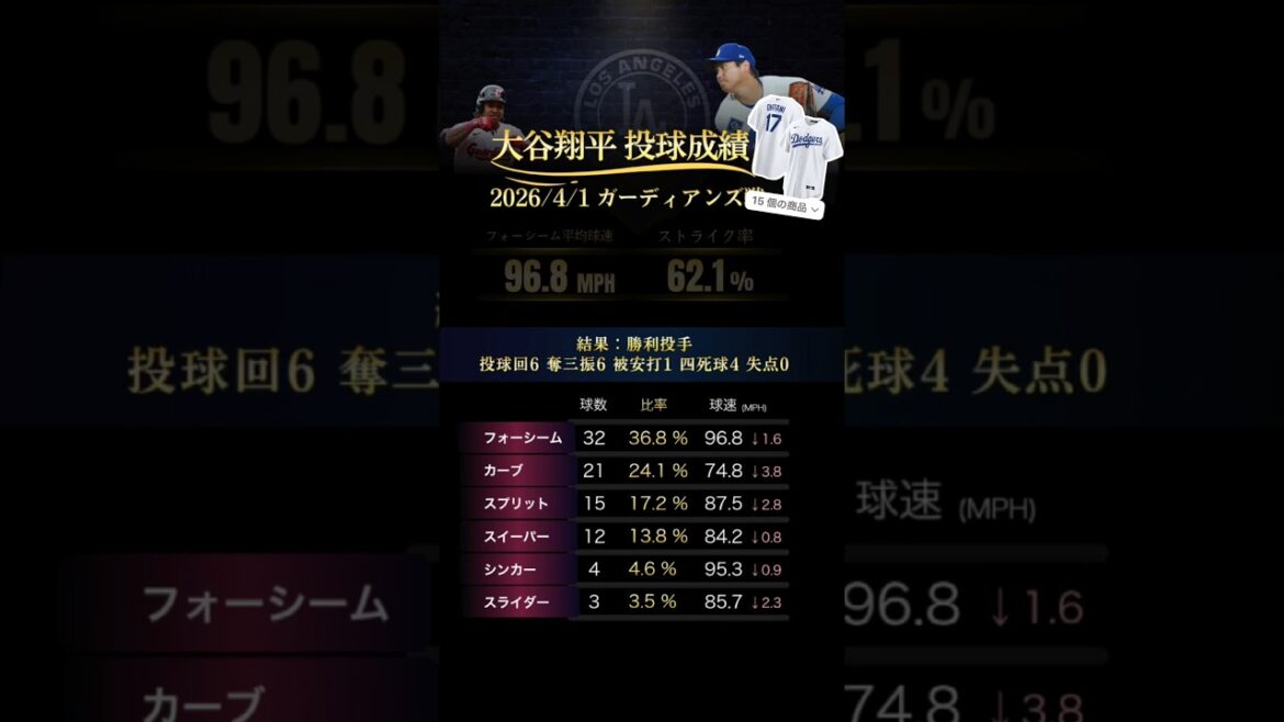MLB2026投手大谷翔平 ガーディアンズ戦に初登板! 本格二刀流の大谷の投手成績!フォーシーム、カーブ、スプリット、スイーパー、シンカー、スライダー各球種をどんくらい投げたか&球速をチェック! BaseballJapanMajor League BaseballMLBMLB2026大谷翔平投手成績日本 NIHON2020.COM