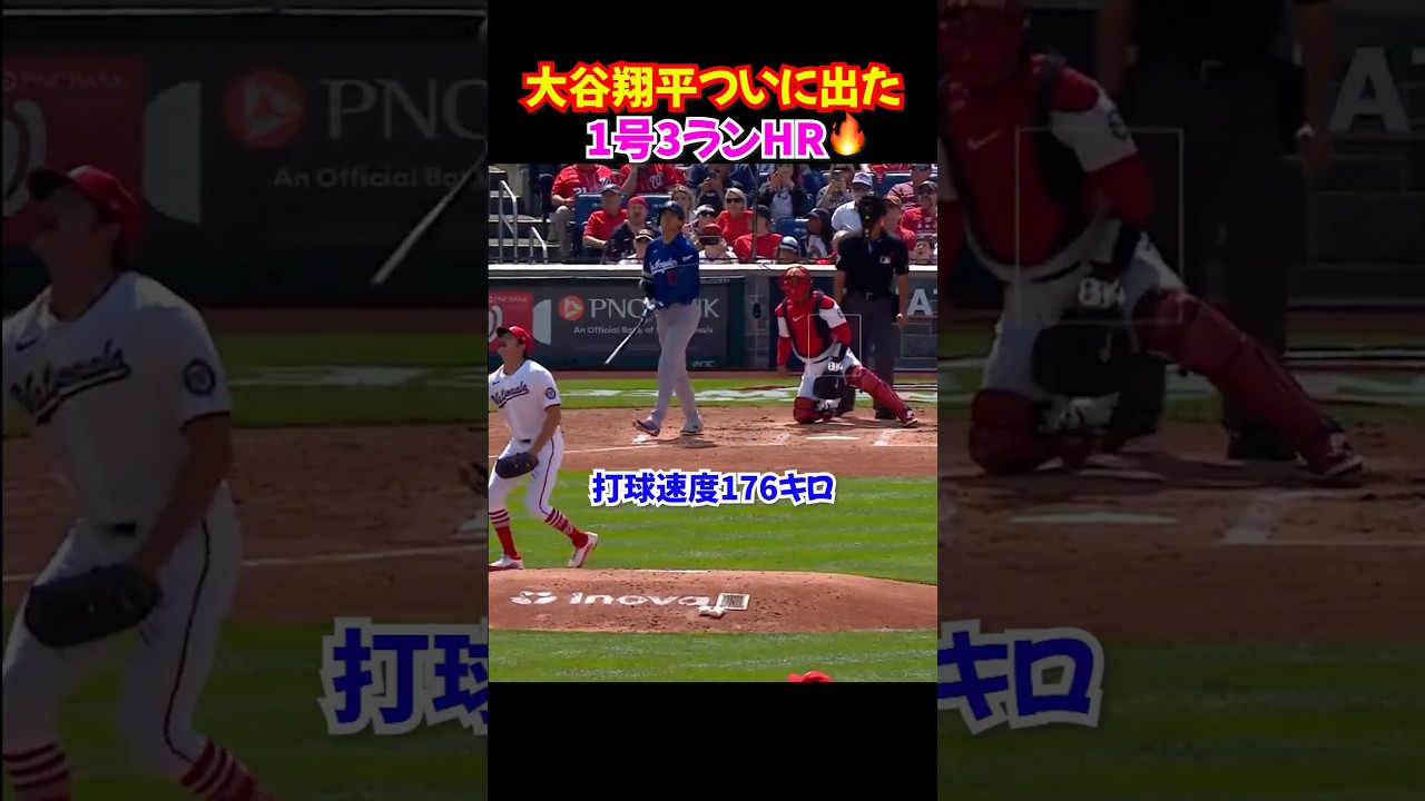 大谷翔平が敵地ナショナルズ戦で今季第1号となる同点3ランホームラン🔥