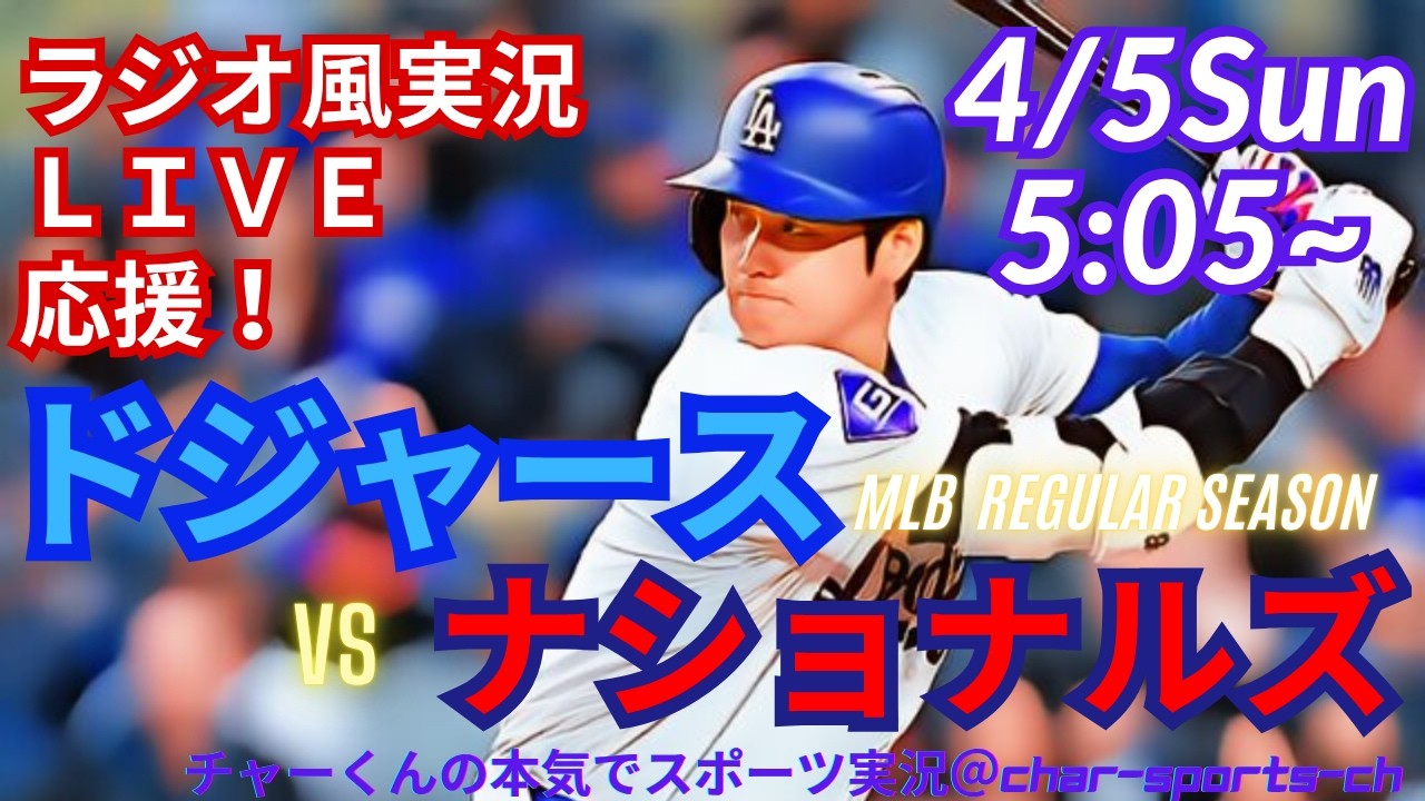 【大谷出場・リアルラジオ風実況】MLBドジャースVSナショナルズをラジオ風に実況ライブ応援!皆さんと一緒に応援したいと思います!今後の配信予定はグーグルカレンダーで確認できます。ご自身のGoogleカレンダーと同期してください→https://bit.ly/char-kun
