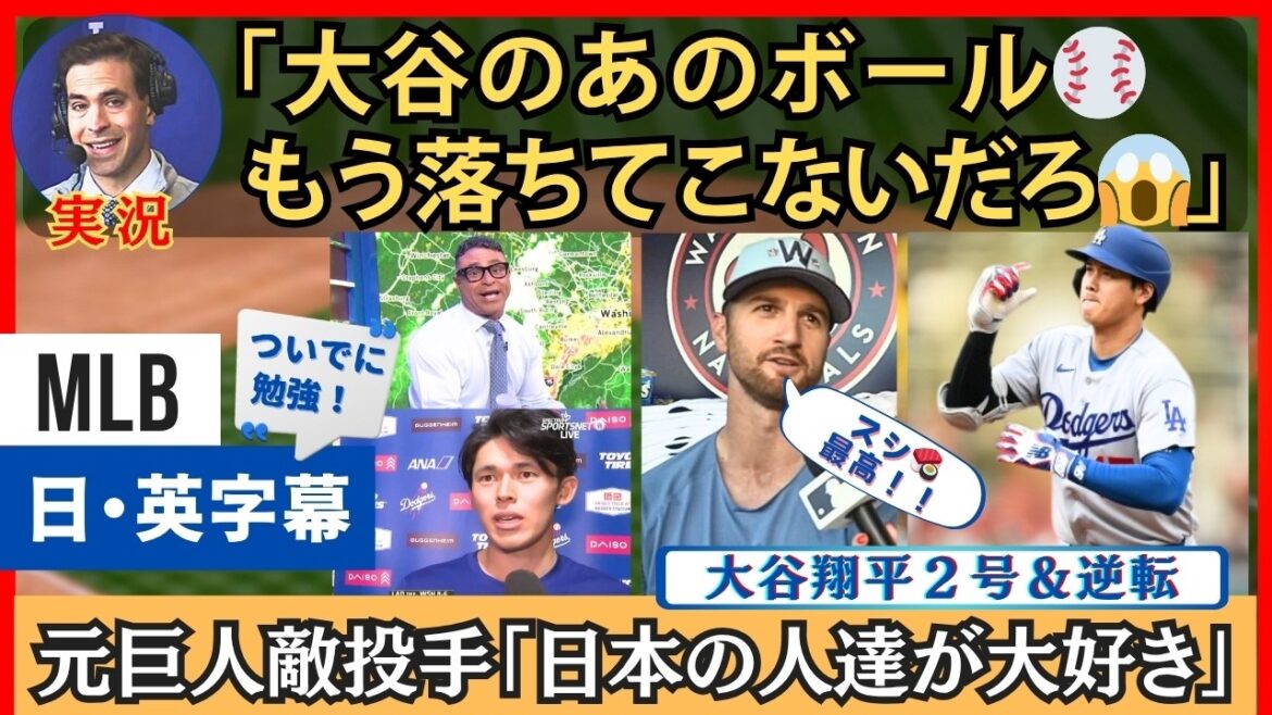 元巨人のグリフィン投手相手に、大活躍を演じた大谷の特大の一発にびびる実況らの様子を日本語・英語字幕でお伝えします。