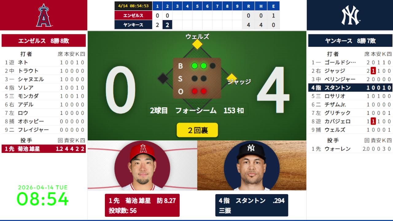 4.14【菊池雄星 先発】エンゼルス対ヤンキース
