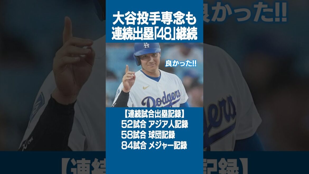 2026年4月16日(日本時間)本拠地ドジャー・スタジアムでの「ドジャースvsメッツ」戦で今季3度目の「二刀流DAY」が見込まれていたが、急遽投手専念での出場に。公式ルールによると連続試合出塁記録は途切れないとのこと。次は韓国秋信守(チュ・シンス)の持つアジア人記録「52」を目指します🔥