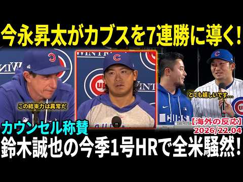 【今永昇太】圧巻の投球で今季2勝目!! カウンセル監督が絶賛「チームの一体感が違いすぎる」鈴木誠也の今季1号ホームランで全米騒然【海外の反応/MLB/野球】