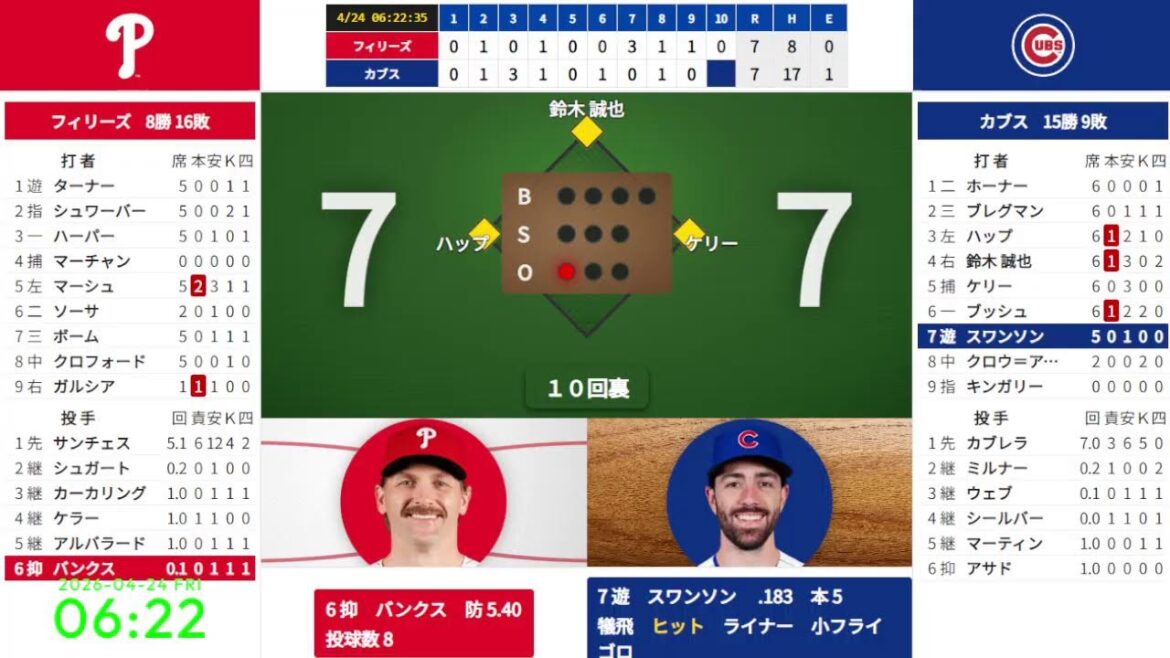 4.24 3:20【鈴木誠也】カブス対フィリーズ