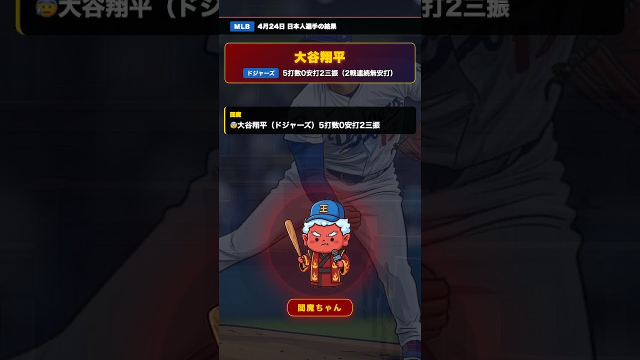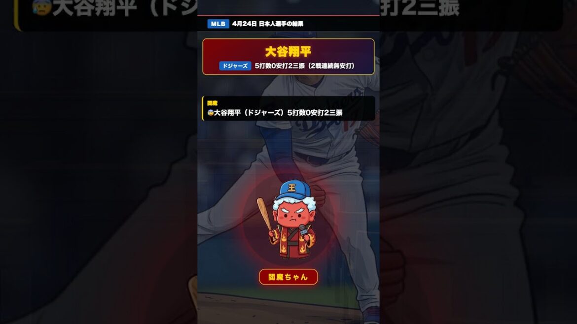 ✅ 大谷翔平(ドジャーズ)5打数0安打2三振・2戦連続無安打