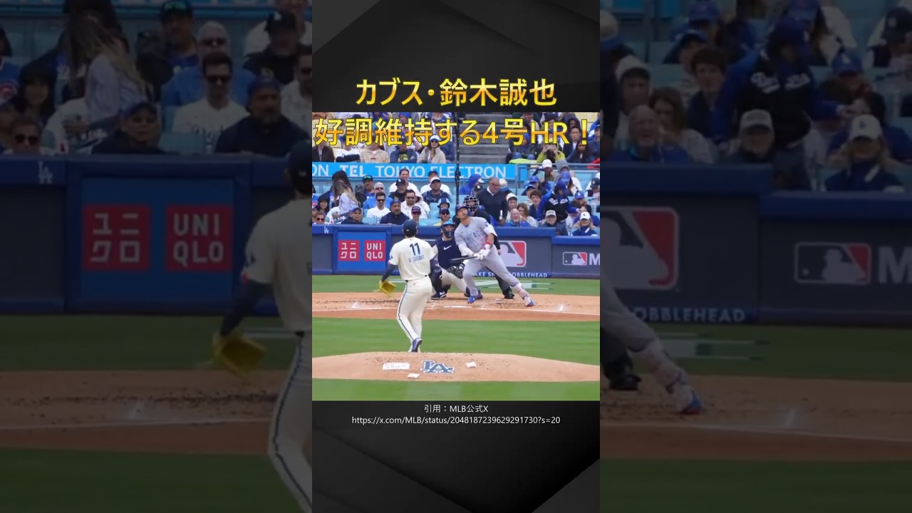 日本時間4月26日、カブス対ドジャースの試合で鈴木誠也選手が佐々木朗希投手から今季第4号となるソロホームランを放ちました!一方ドジャースの大谷選手も4戦ぶりの安打と盗塁をマークし復調の兆しを見せ、佐々木投手は5回4失点で今季初勝利を手にしています!7MKUXJCKWN7WLQO7#野球 #プロ野球 #ベースボール #メジャーリーグ #ドジャース #大谷翔平 #山本由伸 #佐々木朗希 #ロバーツ監督 #カブス #鈴木誠也 #今永昇太 #日本人メジャーリーガー #ボブルヘッドデー BaseballJapanMajor League BaseballMLB日本鈴木誠也 NIHON2020.COM