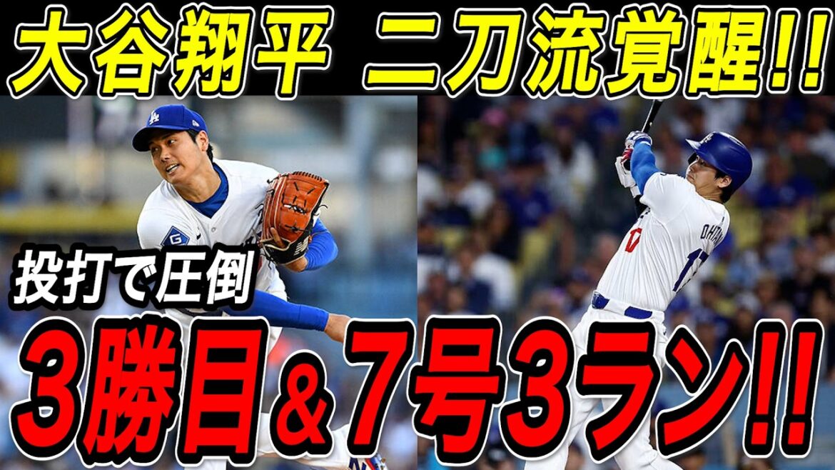 大谷翔平 3勝目&7号3ランホームラン!!7回10奪三振の圧巻投球!2試合ぶりの特大本塁打で二刀流完全覚醒!マーリンズ戦【4月29日】【MLB/大谷翔平/海外の反応】